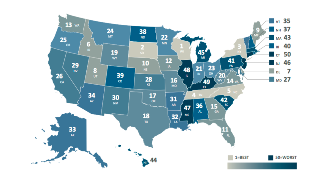 Although Connecticut ranked as one of the worst states for its unfunded pension liabilities, every state had underfunded their pensions and used overly optimistic discount rates. The total liability for all 280 state-administered pension plans included in the study exceeds $6 trillion.