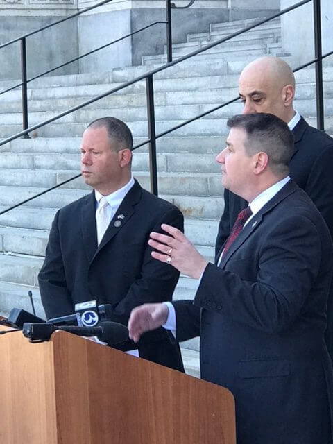 At a press conference on the steps of the Connecticut Supreme Court building, firefighter and president of the New Haven Firefighters Local 825, Frank Ricci, announced the New Haven Firefighters have filed suit against the state-wide firefighters union.