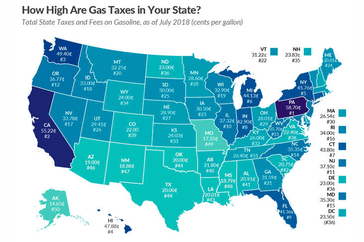 Pennsylvania, California and Washington had the highest gasoline taxes in the country, while Alaska, Missouri and Mississippi had the lowest.