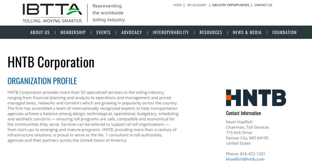 The International Bridge, Tunnel and Turnpike Association is an association of owners and operators of toll facilities and businesses that serve the toll industry and labels itself “THE advocate for the toll industry.”