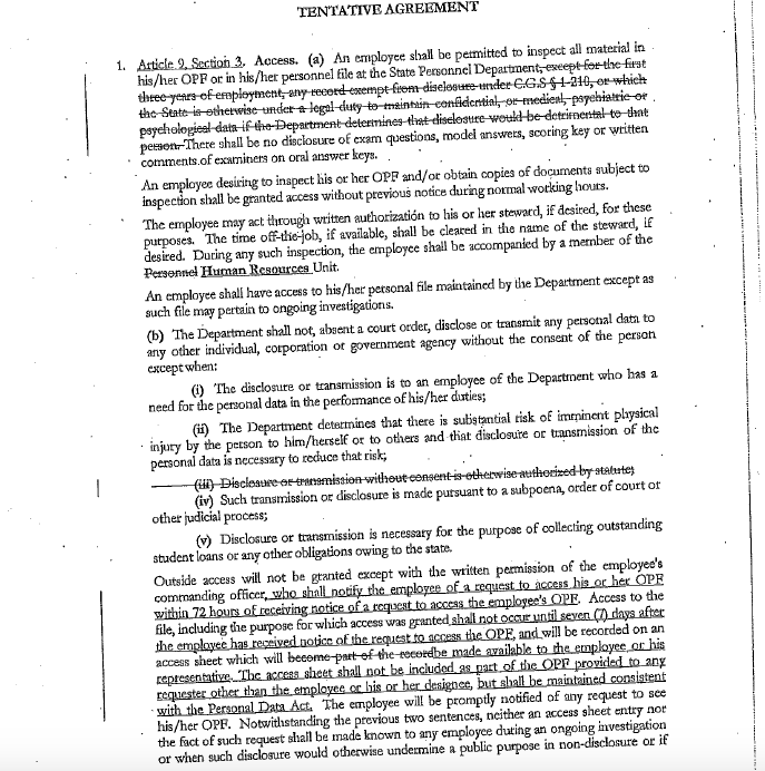 The State Police would not be the only labor contract that hides personnel records by overriding Connecticut’s Freedom of Information laws.