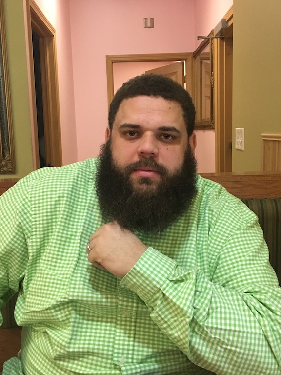 I meet Justin Augustine on a Thursday morning at Triple AAA Pizza on Whalley Avenue in New Haven, a diner bedazzled with digital signs that make it hard to miss. It’s a neighborhood place. The waitress knows Augustine and he receives the occasional fist-bump from other customers as they walk by our booth.