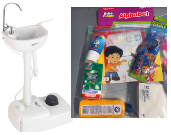 After children participate in the community hand washing course, each child will get their own “stay home, stay safe” self-care kit. These are age-appropriate bags that include: soap, a toothbrush and toothpaste, Kleenex, age-appropriate books and crossword puzzles. The objective of the bags, in addition to clean hygiene, is to promote literacy and personal responsibility to be safe, practice self-discipline and follow the rules for the safety of the entire community.