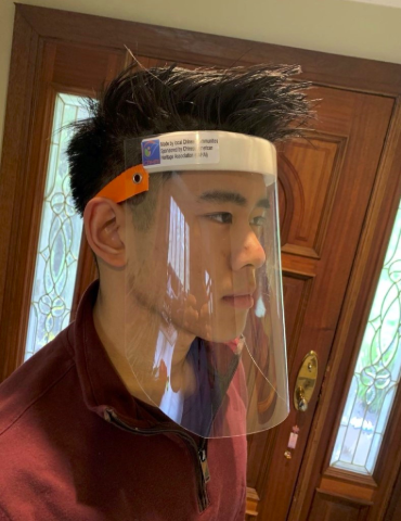 Woodbridge residents William Wang, an undergraduate student majoring in biomedical computation, and his father Frank Wang have designed a face shield for medical workers and organized volunteers from the local Chinese American community to create. Despite severe shortage of materials and critical delays in shipment, a concerted effort by the community enabled the creation of a design utilizing ingenuous materials to replace those normally needed in face shields. Hairbands and pins from local beauty stores served to secure the shield to the head; anti-fog spray for car windows was pretreated across the shield to prevent misting during usage; the distance of the foam to the edge of the plastic board was meticulously tested to ensure the shield would bend correctly under strain. A myriad of technical challenges regarding the utility and effectiveness of the design were painstakingly addressed through such methods of trial and error. Additionally, the Wangs built their own cutting board in their basement to cut the plastic board and foam board to shape, providing step-by-step drawings and instructions for general assembly and production.