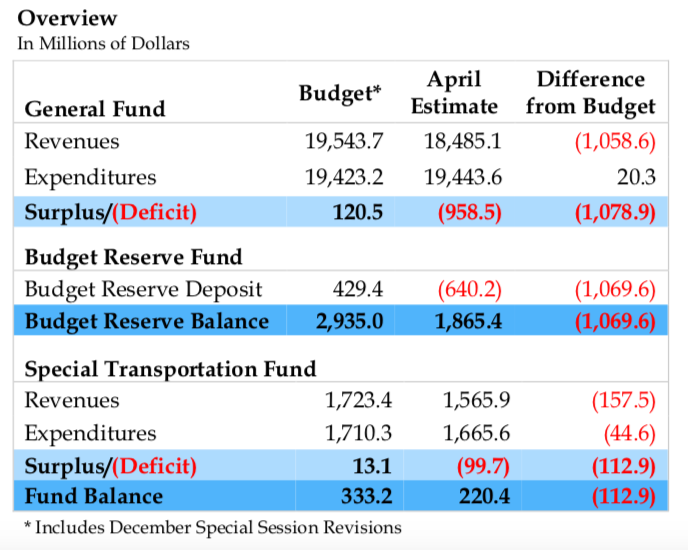 Sales Tax revenue was the largest downward revision, dropping by $281.9 million as a large section of the economy related to hospitality services and retail has been forced to close their establishments to the public.