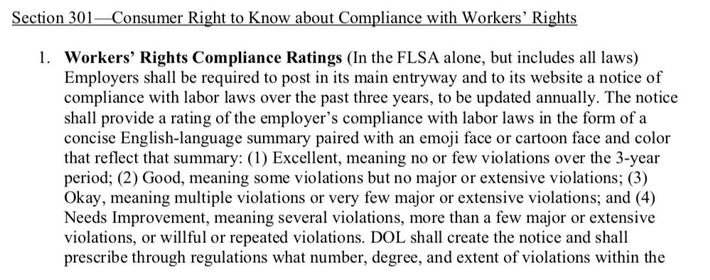 The emoji language comes under the bill’s transparency section, ensuring consumers know a businesses’ compliance with labor laws.