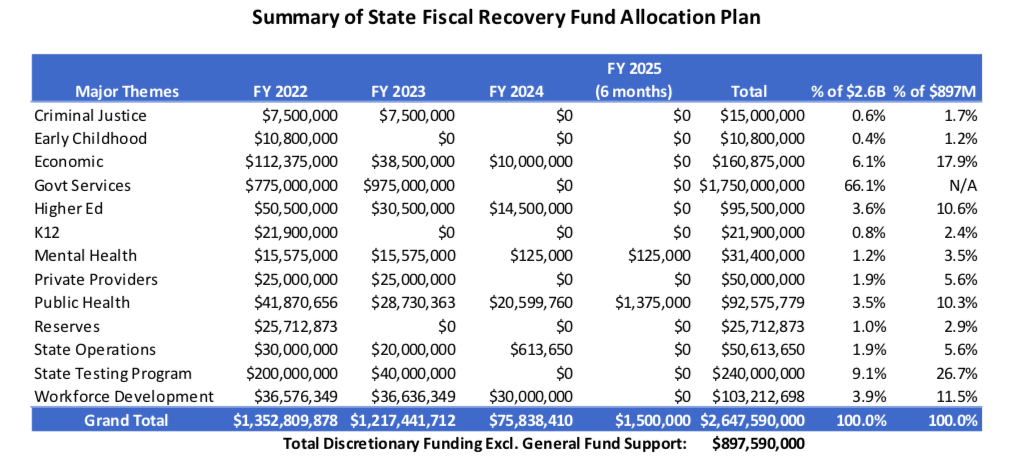 The vast majority of the federal government’s fiscal support funds — $1.75 billion — will be used to bridge projected budget deficits, and the remaining $897 million will be split between other economic mitigation proposals, public health, social and education programs, according to the governor’s proposal.