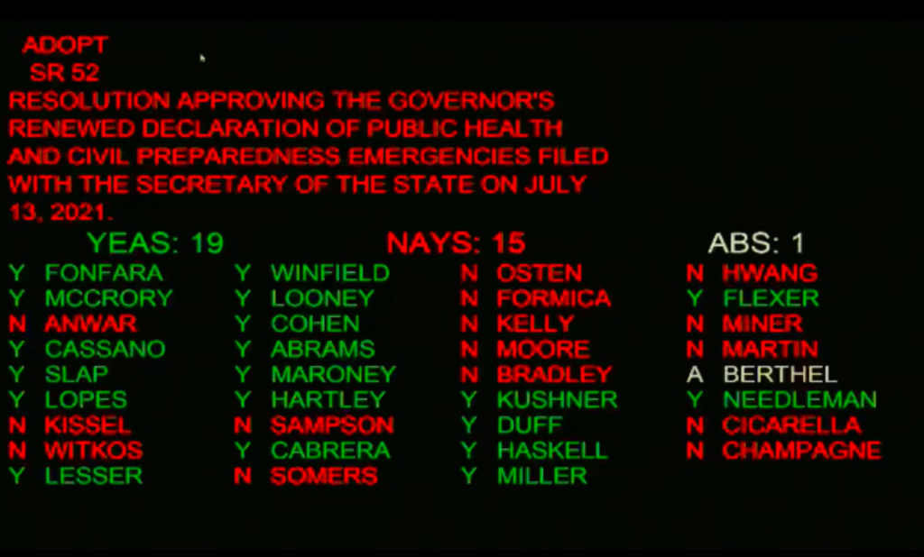 “Restaurants are full, sporting events are on, concerts are being scheduled. The governor is saying hop on airplanes, go out to dinner, and yet he wants the same authority he got in March of 2020, the same authority today,” Senate Republican leader Kevin Kelly, R-Stratford, said.