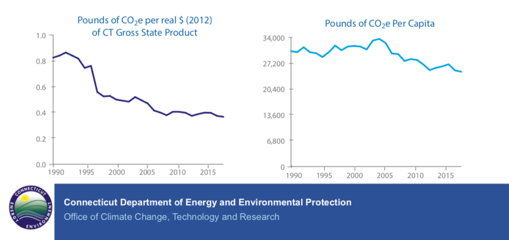 The Emissions Inventory report also noted that “Connecticut’s per capita emissions are among the lowest in the country and have declined 18 percent between 1990 and 2017.”