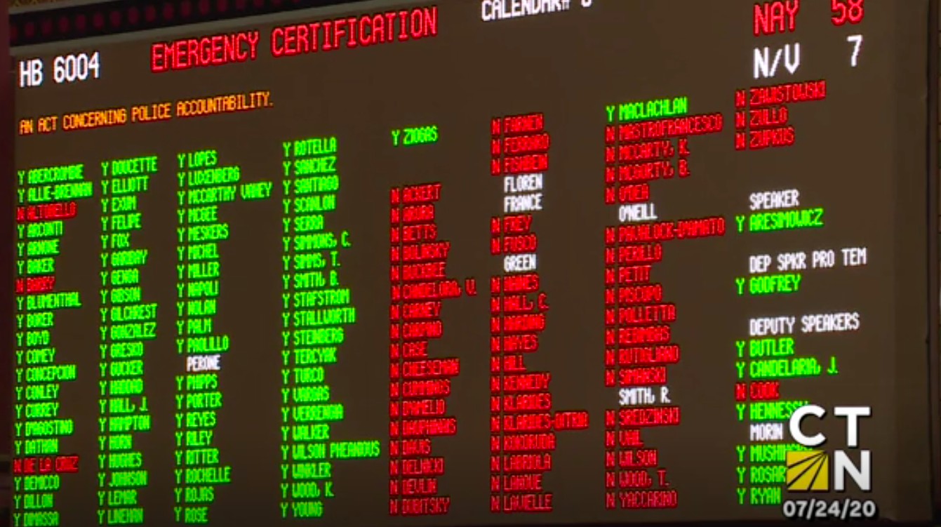 State legislatures responded by passing new bills aimed at police accountability. In Connecticut, the General Assembly convened a special session in July of 2020 to pass the Police Accountability Act, a move that was largely opposed by police officers and police unions who held a protest at the Capitol in opposition.