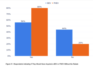Even more shocking is that 56% of BEV respondents stated they would have purchased the vehicle without a rebate, and a staggering 80% of PHEV buyers echoed this sentiment.