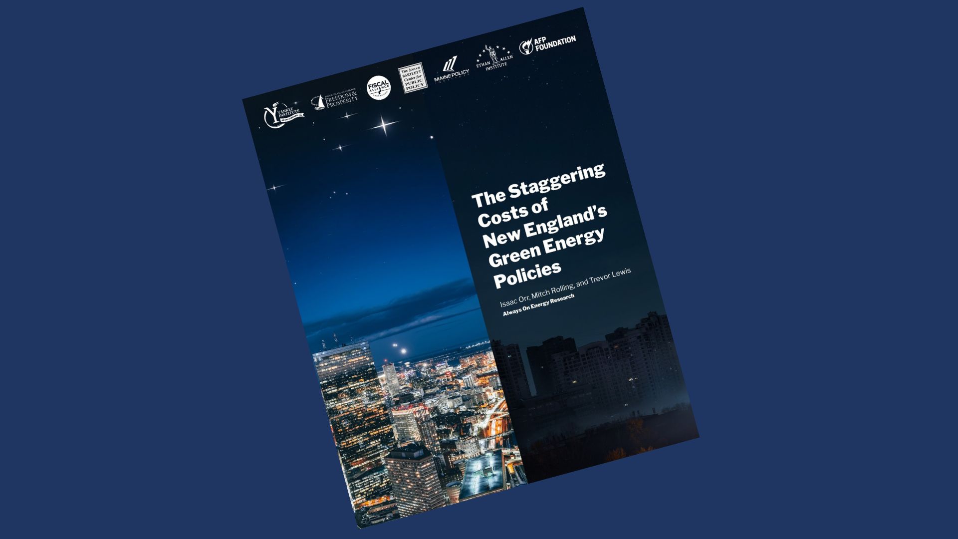 Led by Always on Energy Research (AOER), a policy group dedicated to ensuring that every state in America has affordable, reliable energy, the report, The Staggering Costs of New England’s Green Energy Policies, was compiled by Americans for Prosperity Foundation, the Josiah Bartlett Center for Public Policy in New Hampshire, the Ethan Allen Institute in Vermont, the Fiscal Alliance Foundation in Massachusetts, Maine Policy Institute, Rhode Island Center for Freedom and Prosperity, and Yankee Institute in Connecticut.