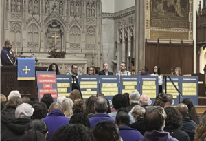 The State Employees Bargaining Agent Coalition (SEBAC), which represents more than 40,000 of Connecticut’s unionized state employees and negotiates wages, benefits, pensions and working conditions, shared a photo on X/Twitter of the panelists seated at a long table in front of the church’s altar.