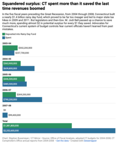 The last time Connecticut had a budget surplus the money didn’t go to debt reduction — it went to spending. Between 2003 and 2008, lawmakers burned through $2.25 billion on pet projects and expanding government programs, leaving the state unprepared for the Great Recession. When the economy crashed, taxpayers got stuck with massive deficits, an $875 million tax hike, and nearly $1 billion in operating debt.