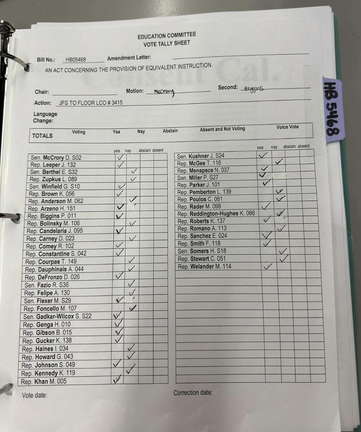 According to a press release from Attorney Deborah G. Stevenson of the National Home Education Legal Defense, a review of the official vote sheet indicated that at least four votes originally recorded as “no” had been changed to “yes,” with white-out used to revise the entries. Those changes determined the bill’s advancement.